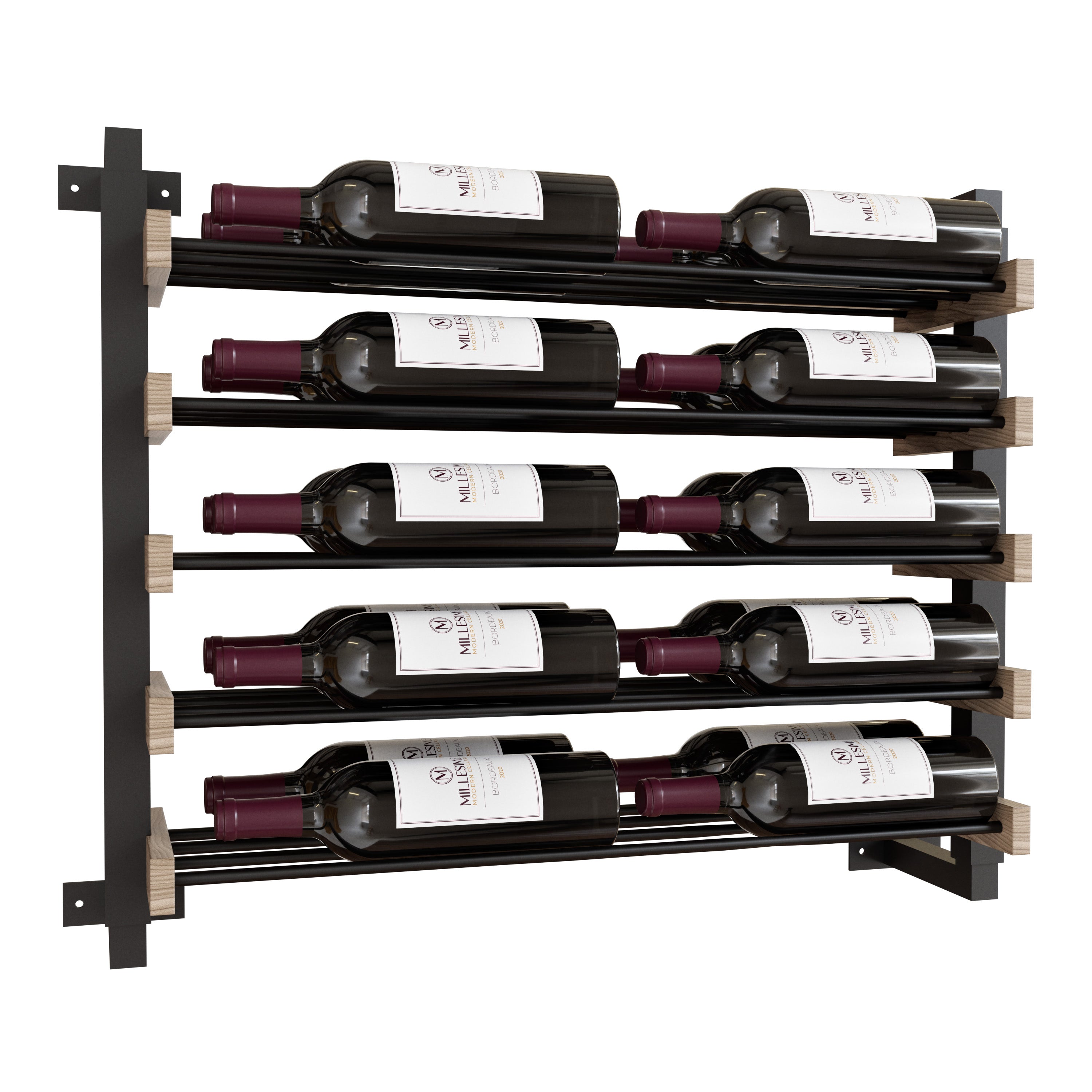 Millesime Wine Wall Collection Streamline Wall-Mounted Wine Rack, 24" Height, 5 Shelves, 2 Bottle Wide, 2 Bottle Deep